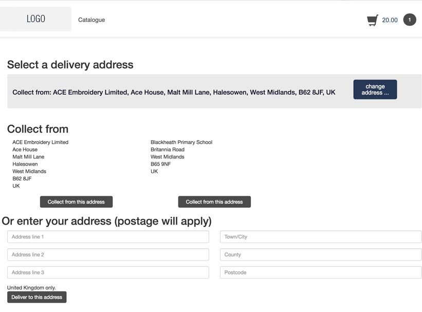 2. The collection or delivery address can be changed by clicking change address button.